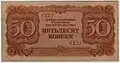 Для выпуска на восточных территориях СССР, который должен был произойти в случае их оккупации, Министерством финансов Японии были разработаны и изготовлены специальные денежные знаки номиналом в 10 и 50 копеек, 1 и 5 рублей, 1 червонец. На всех банкнотах имеется надпись на русском языке «ИМПЕРАТОРСКОЕ ЯПОНСКОЕ ПРАВИТЕЛЬСТВО», обозначение номинала цифрами и прописью, номер серии[1].