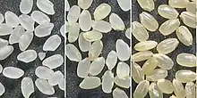 Рис выращивают по всей Японии, а некоторые его сорта — и за рубежом, например, в США. На северном острове Хоккайдо с его более холодным климатом используют особые сорта.