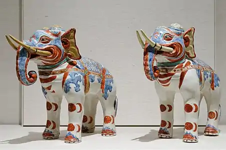 Первый экспортный фарфор был отправлен на Яву в 1653 году, точкой назначения была аптека Голландской Ост-Индской компании в Батавии[6]. В дальнейшем при изготовлении экспортных предметов для Компании японские гончары ориентировались на деревянные болванки, которые им присылали заказчики[7]. Японские керамические изделия отправляли морем с Дэдзимы также в Голландию, Индию, Персию, на Цейлон, во Вьетнам, Сиам и другие страны[7][6].