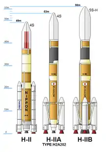 - H-IIA — РН среднего класса (первый запуск в 2001 году)