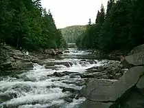 | Скала «Слон» в Яремче | У подножия скалы «Слон», на берегу р. Прут | Вид на Яремче с горы Маковица | Река Прут, район сувенирного рынка | Один из водопадов на р. Прут |