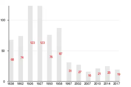 | 1838 | 1862 | 1926 | 1927 | 1950 | 1958 | 1997 |
