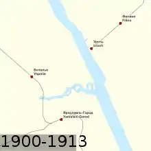 От станции Ярославль была проложена линия до волжских пристаней, так называемая «Ветка». Линия начиналась на территории нынешнего грузового двора, пролегала по территории нынешнего проспекта Фрунзе и далее по существующему перегону Ярославль — Ярославль-Пристань.