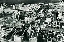 После освобождения Новгорода от фашистских войск, здания и исторические постройки Ярославова дворища, а также прилегающих к нему торговых рядов по улице 1 Мая, пострадав во время оккупации, в большинстве своём ещё имели хорошо сохранившиеся стены, а в некоторых случаях даже кровли. Практически все они подлежали восстановлению.
