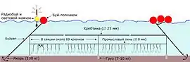 | Схема постановки испанского (двойного) донного яруса | Схема постановки донного тротлайн-яруса | Схема постановки донного автолайн-яруса |