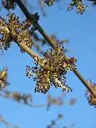 Цветки мелкие, без околоцветника, обоеполые, с двумя тычинками и пестиком с двураздельным рыльцем (реже встречаются цветки без пестика), собраны пучками в метёлки на побегах прошлого года. Цветение — до появления листьев, в центре Европейской части России — в апреле—мае.