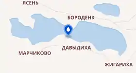 На северном берегу озера расположены деревни: Ясень и Бородёнки, на южном — деревни Марчиково, Давыдиха и Жигариха.