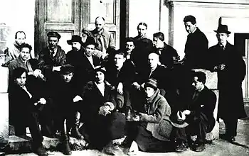 1 ряд: Е. О. Машкевич, И. Ф. Завьялов, В. Е. Пестель, Т. Г. Романович, А. С. Ястржембский ; 2 ряд: В. Н. Чекрыгин, Л. Ф. Жегин, Н. Х. Максимов, К. К. Кодлубинский, Н. М. Григорьев, К. К. Зефиров, С. В. Герасимов, А. В. Шевченко, Н. М. Чернышёв, М. С. Родионов, С. М. Романович, Амфиан Решетов (Н. Н. Барютин), неизвестный. Фотография Роберта Иохансона.