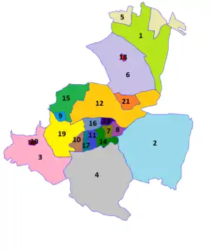 Территория города Ястшембе-Здруй разделена на 21 административную единицу двух типов: солецтва (во главе стоит совет солецтва или солтыс) и оседле (с собственными советами). С 2010 года город делится на 6 солецтв и 15 оседл[5][6][7].