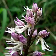 - Orchis × angusticruris Franch., 1876 — O. purpurea × O. simia