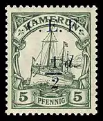 Поскольку денежные системы в самой Германской империи и в её колониях, за исключением Германской Восточной Африки, в описываемое время были совместимы (1 золотая рейхсмарка = 100 пфеннигов), а тарифы на почтовую пересылку идентичны, до 1897 года там находились в обращении обычные стандартные почтовые марки Германии[3].