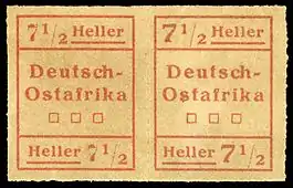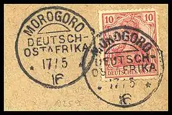 Определить их использование именно в той или иной колонии можно только по почтовому гашению с обозначением города и/или колонии. Описанные почтовые провизории называют «марками-предшественницами»[5]. В Германской Восточной Африке с 1893 года применялись стандартные имперские почтовые марки с надпечатками номинала в пезах и рупиях, местной валюте[6].