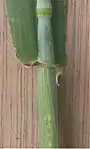 Листья до 30 см длиной и 2—3 см шириной, плоские, гладкие, с ушками при основании пластинки.