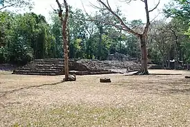 ![]() Площадка для месоамериканской игры в мяч в Яшчилане, где Яшун-Балам III играл в мяч. | |