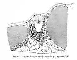 Хорошо развитый «третий глаз» у некоторых видов расположен на верхней части головы. Это глаз, в котором есть сетчатка и хрусталик, и который соединен нервами с гипофизом. Этот орган играет роль в продукции гормонов, терморегуляции и не формирует изображения.