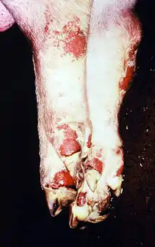 Я́щур — острое вирусное заболевание[1] из группы зоонозов, характеризующееся интоксикацией и везикулезно-эрозивным (пузырьково-язвенным) поражением слизистых оболочек ротовой и носовой полости, а также кожи межпальцевых складок и околоногтевого ложа.