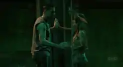 Джек и Кейт видят друг друга через стекло. | |||||