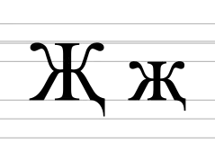| Буква кириллицы Ж с нижним выносным элементом | |||||||||||||||||||||||
