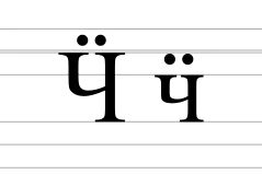 | Буква кириллицы Ч с умлаутом | |||||||||||||||||||||||