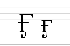 Существует более редкая форма буквы, образованная с использованием нижнего выносного элемента вместо крюка и выглядящая как