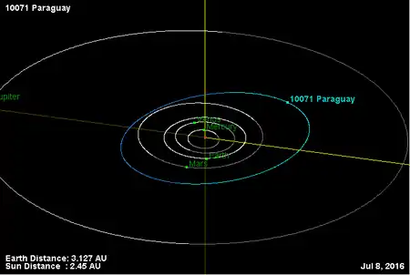 Орбита астероида Парагвай и его положение в Солнечной системе