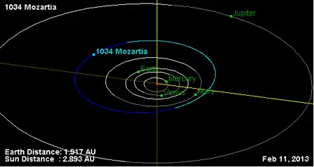 Орбита астероида Моцартия и его положение в Солнечной системе