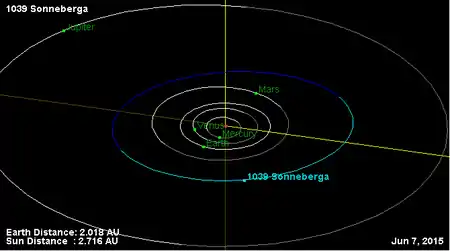 Орбита астероида Зоннеберга и его положение в Солнечной системе