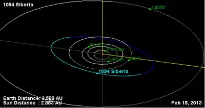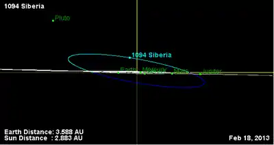 - Орбита астероида Сиберия и его положение в Солнечной системе