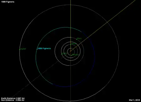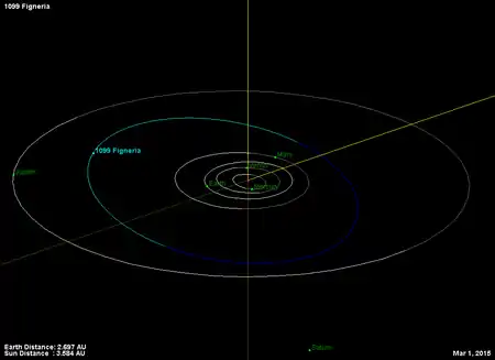 - Орбита астероида Фигнерия и его положение в Солнечной системе