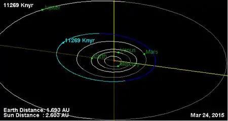 Орбита астероида Кныр и его положение в Солнечной системе