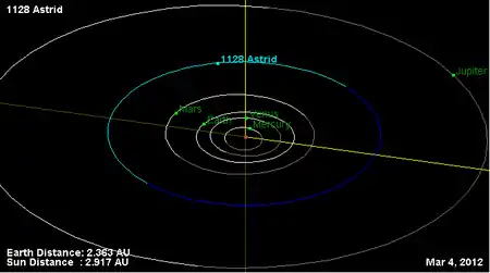 Орбита астероида Астрид и его положение в Солнечной системе