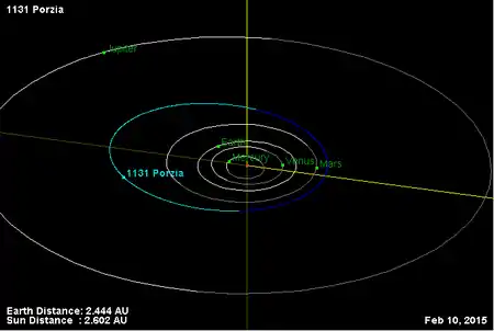 Орбита астероида Порция и его положение в Солнечной системе