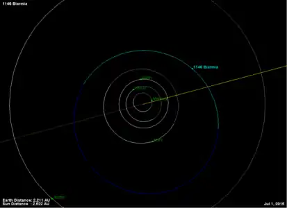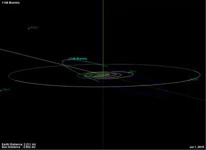 - Орбита астероида Биармия и его положение в Солнечной системе