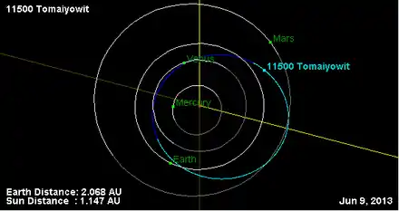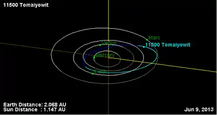 - Орбита астероида Томайёвит и его положение в Солнечной системе