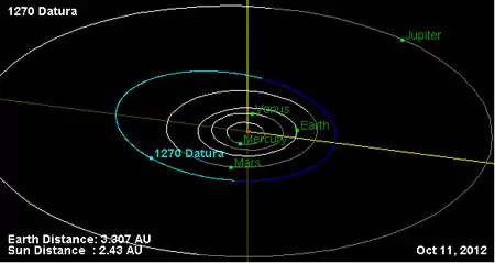 (1270) Датура (лат. Datura) — астероид из группы главного пояса, который принадлежит к светлому спектральному классу S. Он был открыт 17 декабря 1930 года бельгийско-американским астрономом Жоржем ван Бисбруком в обсерватории Уильямс-Бэй[5] и назван в честь латинского названия дурмана, рода трав семейства паслёновые[6].