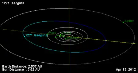 Орбита астероида Изергина и его положение в Солнечной системе