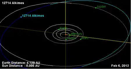 Орбита астероида Алким и его положение в Солнечной системе