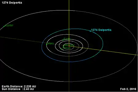 Орбита астероида Дельпортия и его положение в Солнечной системе