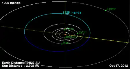 Орбита астероида Инанда и его положение в Солнечной системе