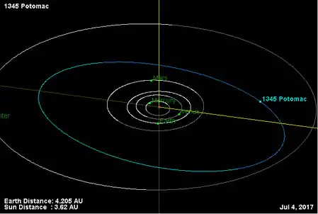 (1345) Потомак (лат. Potomac) — астероид внешней части главного пояса, который принадлежит к спектральному классу X и входит в состав семейства Хильды. Астероиды данного семейства находятся в сильнейшем орбитальном резонансе с Юпитером 3:2[1]. Он был обнаружен 23 сентября 1913 года американским астрономом Джоэлом Меткалфом в обсерватории города Тонтон и назван в честь реки Потомак, на востоке США[2].