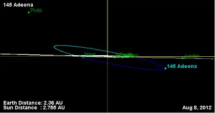 - Орбита астероида Адеона и его положение в Солнечной системе