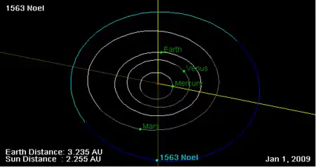 Орбита астероида Ноэль и его положение в Солнечной системе