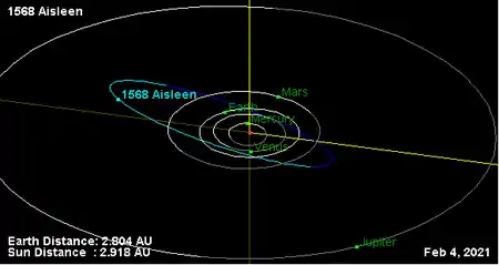 Орбита астероида Айслен и его положение в Солнечной системе