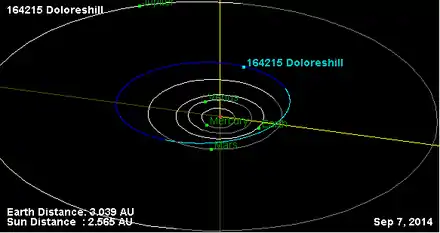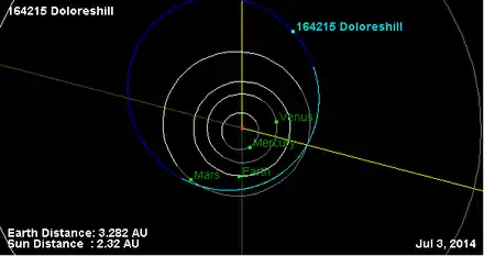 - Орбита астероида Долоресхилл и его положение в Солнечной системе