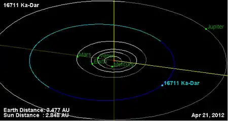 Орбита астероида Ка-Дар и его положение в Солнечной системе