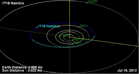 Орбита астероида Намибия и его положение в Солнечной системе