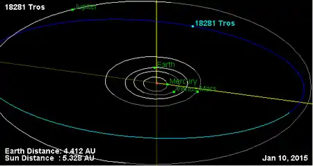 Орбита астероида Трос и его положение в Солнечной системе