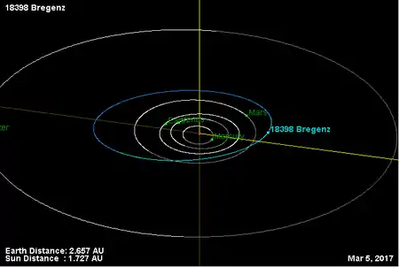 Орбита астероида Брегенц и его положение в Солнечной системе