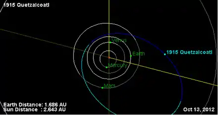 - Орбита астероида Кетцалькоатль и его положение в Солнечной системе