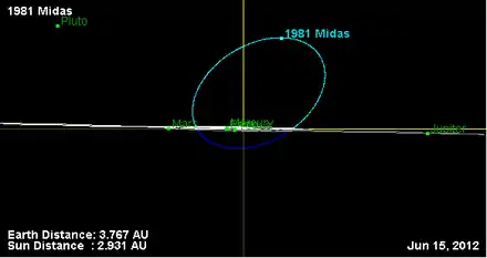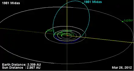 - Орбита астероида Мидас и его положение в Солнечной системе